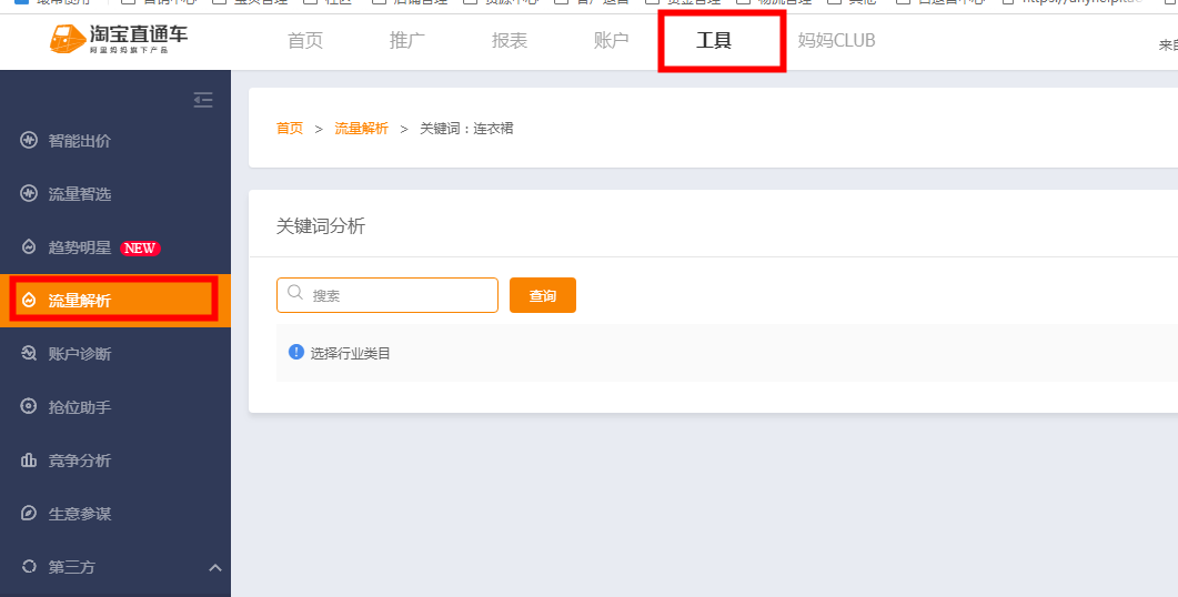 直通车是一种付费推广工具,可以让你的宝贝出现在首页,直通车在手机端的展示是带有HOT标,在PC端是带有掌柜热卖的字样,通过热门的展位,可以根据买家搜索关键词展现匹配方式,把你的宝贝以精准的流量展现给想买的人看,给店铺带来精准的访客。我们在组合创意标题之前,需要知道在哪里去找词、选词以及养词呢? 首先我们先来看在哪个地方选词呢?我们找词的时候系统会给我们推荐很多的词,这个词是系统根据你的类目在大数据算法下统计出来的,但是这种词一般都是大词且是不精准的,在我们开车的时候可以把流量智选词包关闭,在没有词的情况下是可以使用的; 就是利用直通车里面的工具---流量解析来选择关键词,路径是进入直通车后台,在左侧选择工具,找到流量解析,然后输入你自己的类目的关键词,进行推广词表下载,找到合适的关键词进行测试;第三种方法:是利用生意参谋,通过行业热搜词推荐以及搜索词进行查询,进入生意参谋后台之后,找到数据-----市场----搜索分析,输入自己类目的关键词,可以看到这个关键词的搜索人气、支付转化率等数据;第四种方法:是利用没有账号登录的淘宝搜索下拉框选词,在下拉框会出现一些长尾词,当然这些词并不会完全符合要求,需要在添加进去之后,看关键词质量分的高低,保留分高的,分低的词就不要了;第五种方法:是利用其它渠道选词,比方说可以直接在网页搜索阿里指数,一些行业热词也是可以使用的、店查查这个第三方插件,或者是参考一下同行的标题,看看用的什么词,但是注意不要去复制。