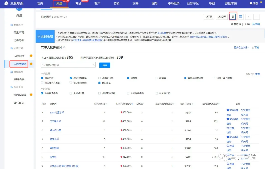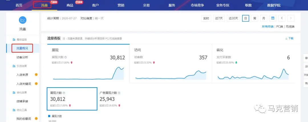 生意参谋-----我每天的展现上升或者下降。我该怎么观察?