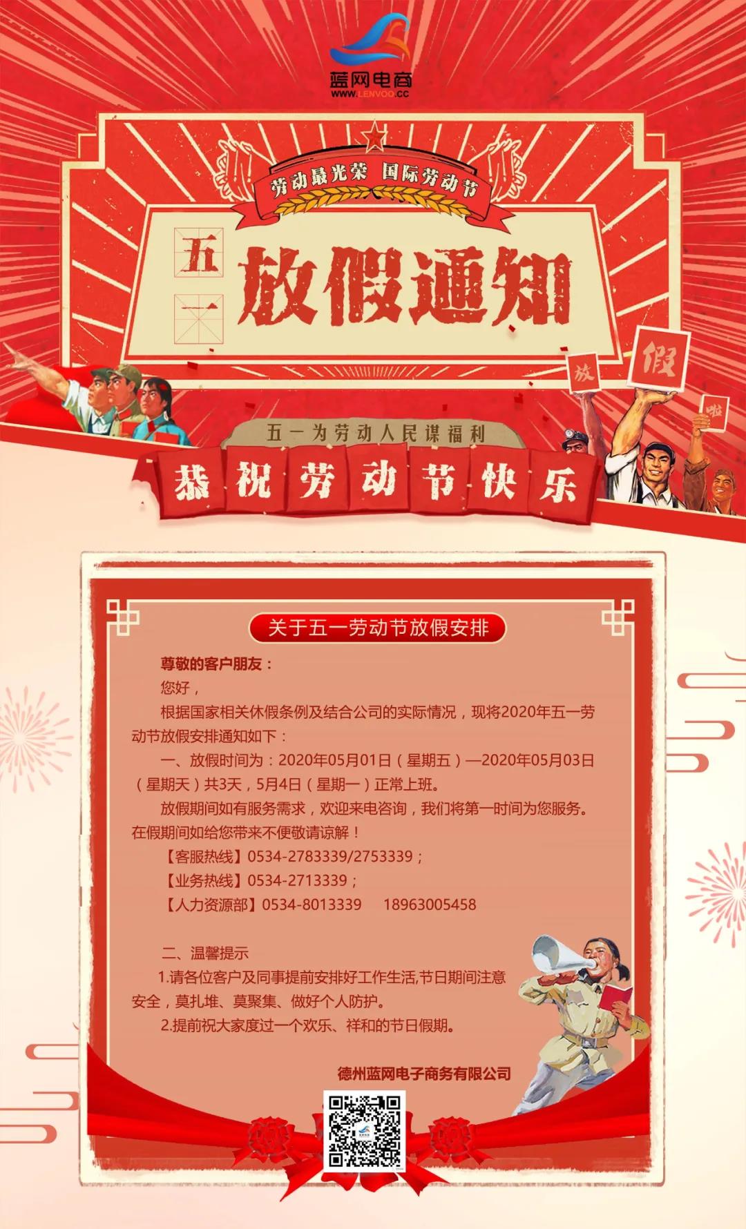 蓝网电商五一放假通知
