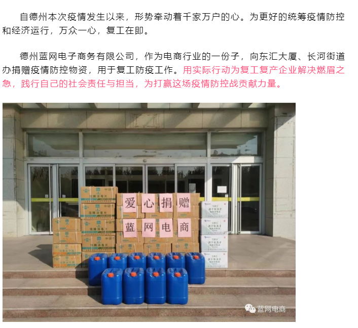 众志成城战疫情 蓝网电商爱心捐赠
